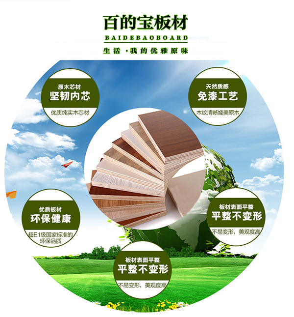 百的寶健康板材以行動為準則,打造板材行業的品質標桿企業,引領環保健康綠色板材為宗旨,讓千家萬戶用上安全可靠、放心舒適的板材產品。