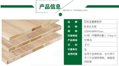 刨花板材一度也是行業的大勢,但因其在使用中很容易受潮,無法長期使用,時間久了就會出現各種問題,所以逐漸被杉木生態板替代了。百的寶健康板材品牌杉木生態板完全杜絕了這種現象,它是基于實木板結合到一起,而且沒有任何的化學物質,不會有甲醛等,使用起來放心,而且是防水,防腐,防蟲。這會讓消費者在使用中非常放心,也很安心,彌補了過去板材的空白。