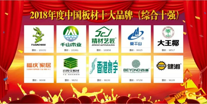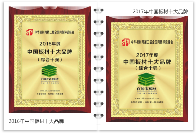 繼2016年和2017年榮獲中國板材品牌(綜合十強)之后,百的寶板材梅開三度,今年再次將此殊榮收入囊中!