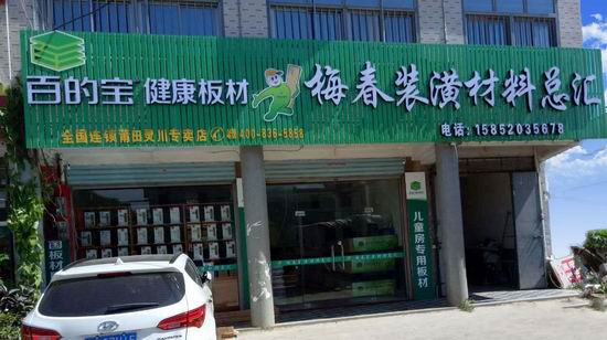 梅春裝潢材料總匯做為百的寶健康板材全國連鎖莆田靈川專賣店繼承了百的寶一貫大氣簡約的裝修風(fēng)格。