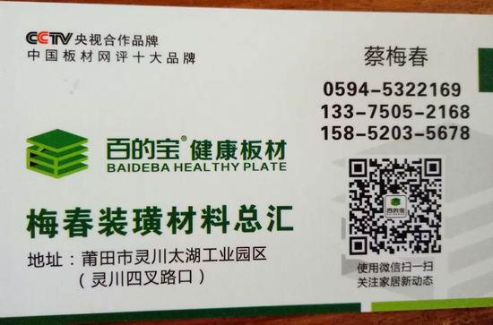 靈川專賣店蔡總表示:“選擇百的寶,看中的是品牌良好的口碑和市場形象。百的寶板材的營銷策略一直都是以人為本,以康為責(zé);為消費者提供健康、安心的高品質(zhì)家居產(chǎn)品,這一點也是最吸引我的地方。選擇百的寶,加入百的寶也是想要把這樣一個一心為消費者做健康板材的品牌做大做強?!?/strong>