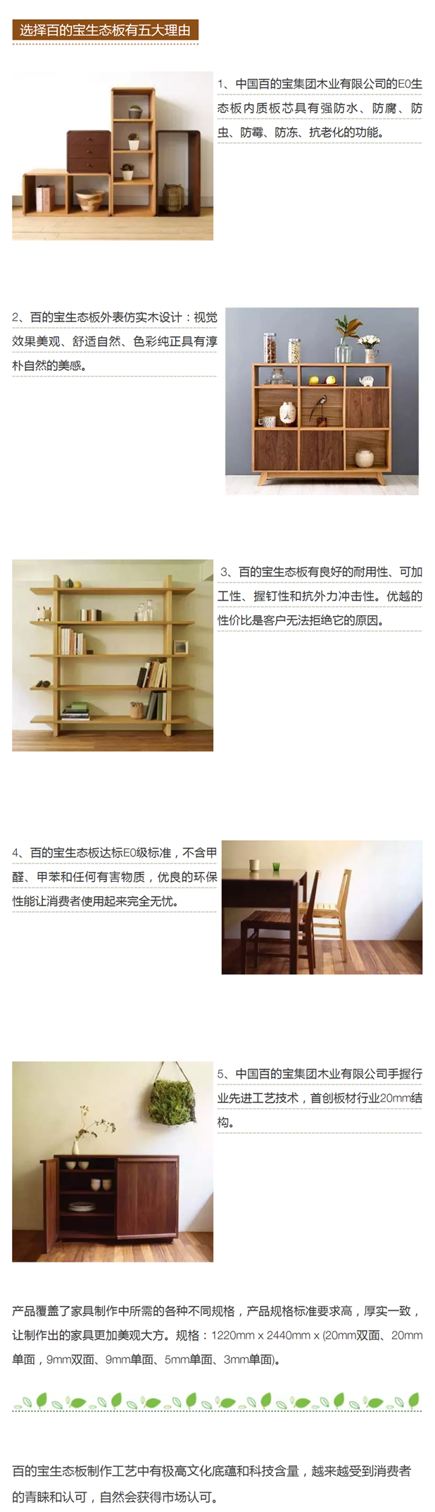 ■ 百的寶板材的環保性不同,百的寶生態板使用高分子無醛無笨水性環保膠,環保性能E0級,遠超國家規定同類產品標準。